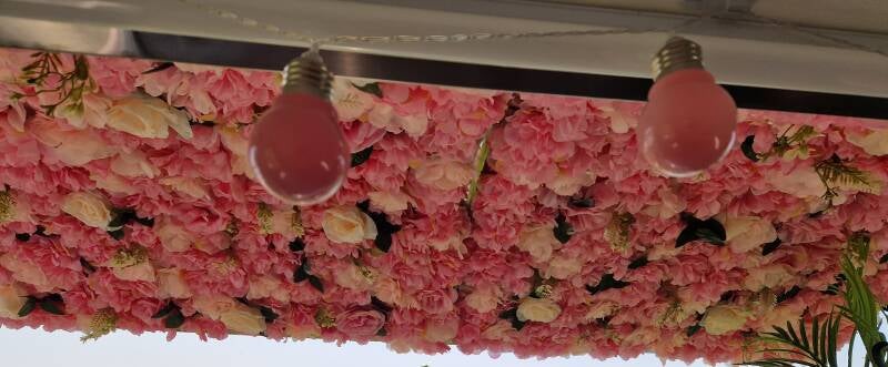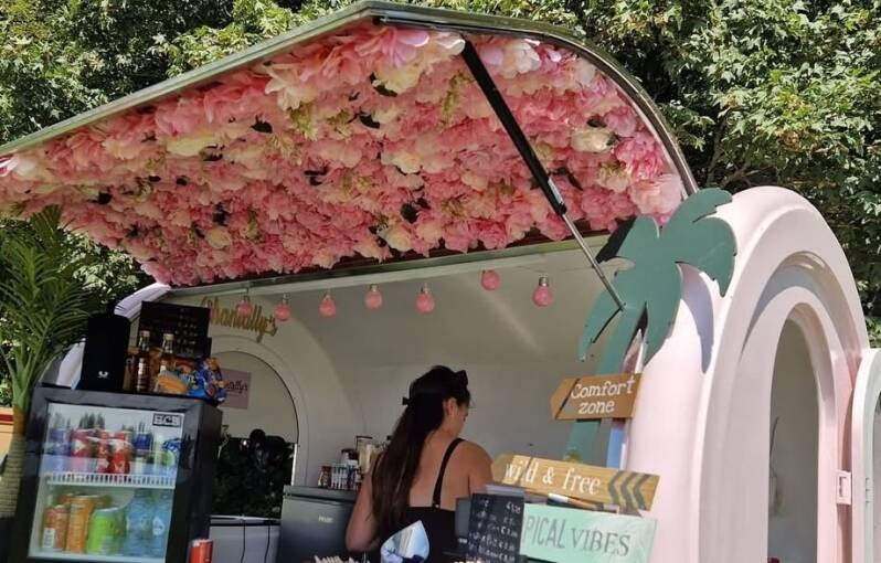 En met onze roze foodtruck zijn we een gezellige verschijning en bloemen versiering.